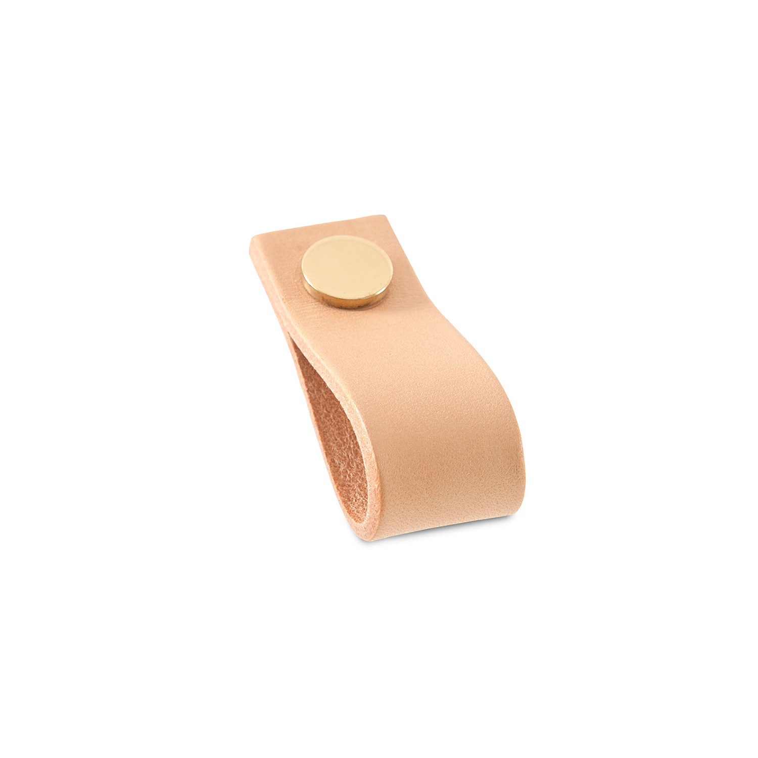 Handtag Ballingslöv Bad i Läder till dina skåp och lådor är ett dubbelvikt handtag av mjukt och lyxigt, garvat läder med ett metallfäste.