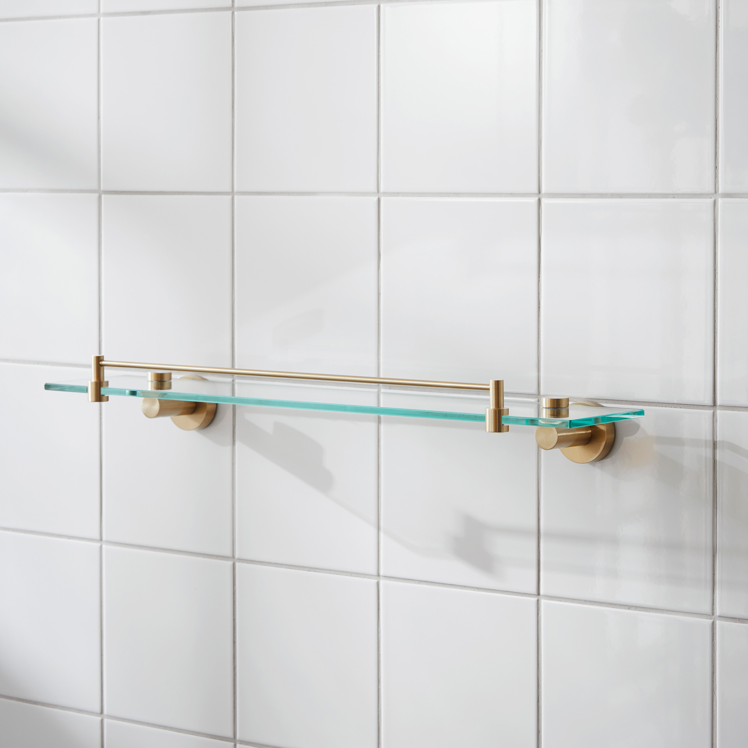 Glashylla av härdat klarglas med räcke. Väggplattans diameter är 45 mm. Serien Bond finns i olika utföranden.