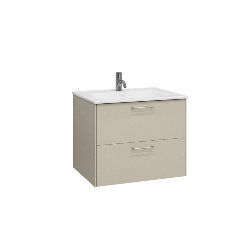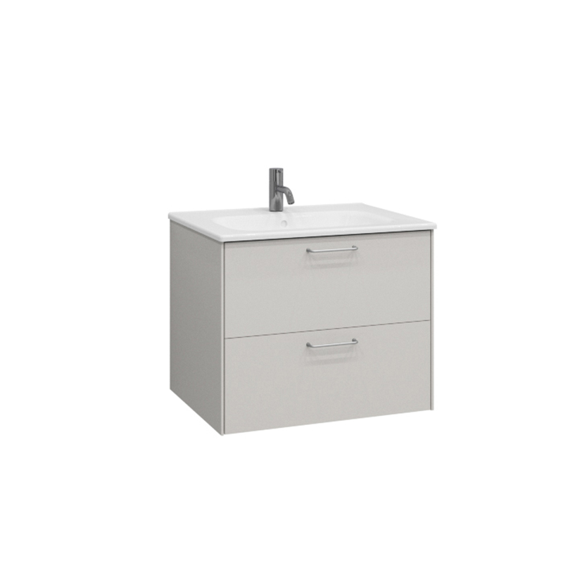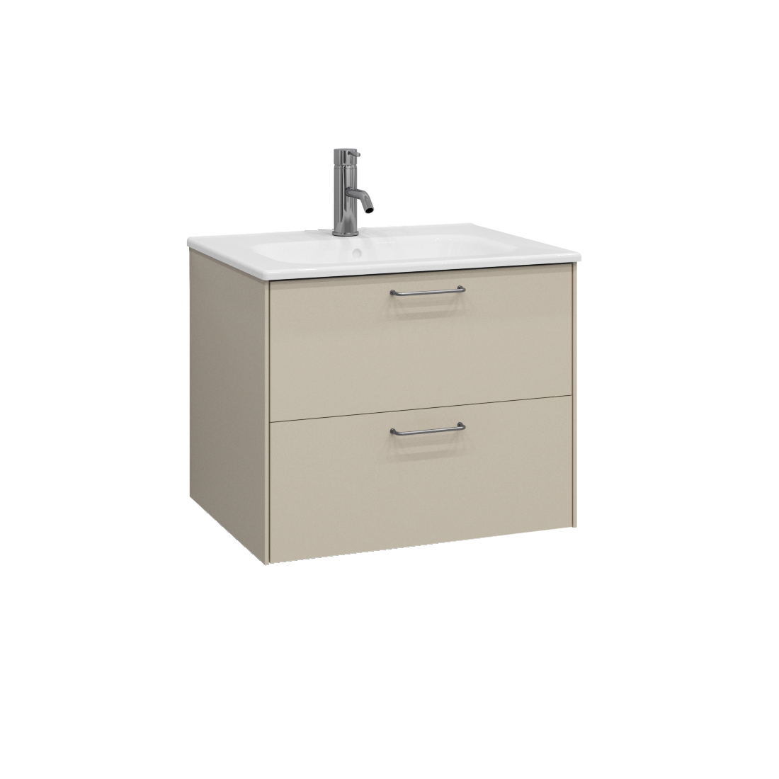 Tvättställsskåp Ballingslöv KC60 Lessmore med minimalistisk stil ger ditt badrum en modern look. Detta färdigmonterade tvättställskåp levereras med två mjukstängande trälådor och korkmatta i ett lådfack. Den övre lådan är indelad i mindre fack för alla småsaker som man behöver i ett badrum. Den nedre lådan är indelad i större fack.