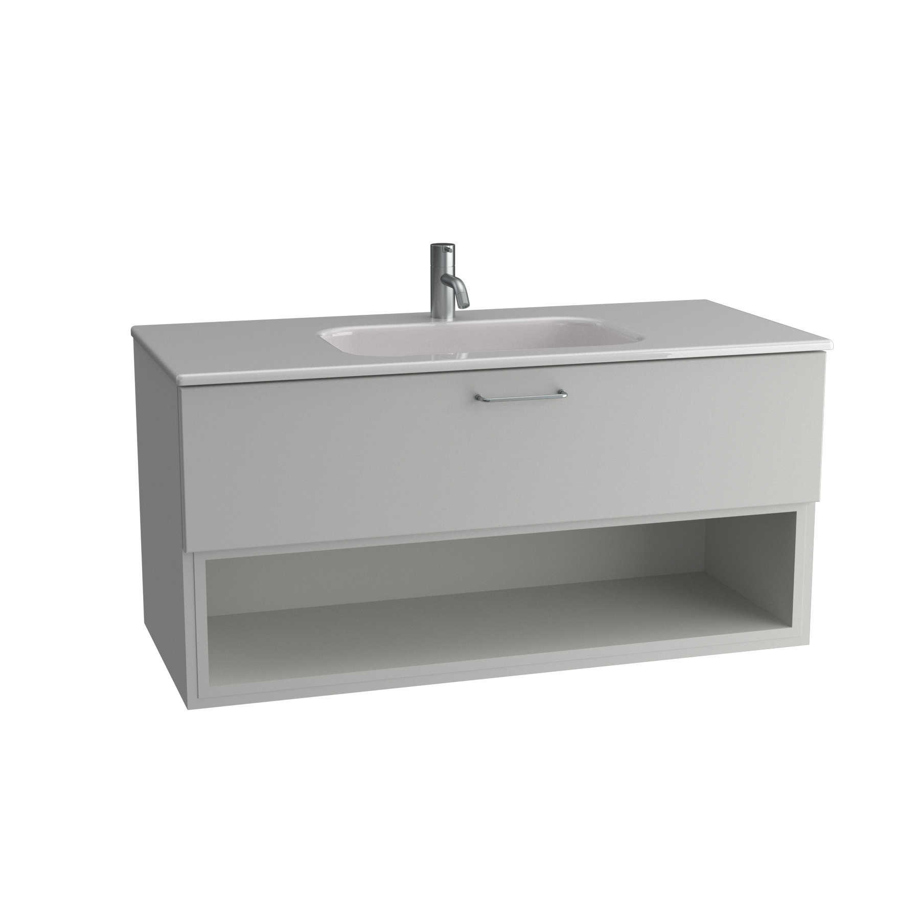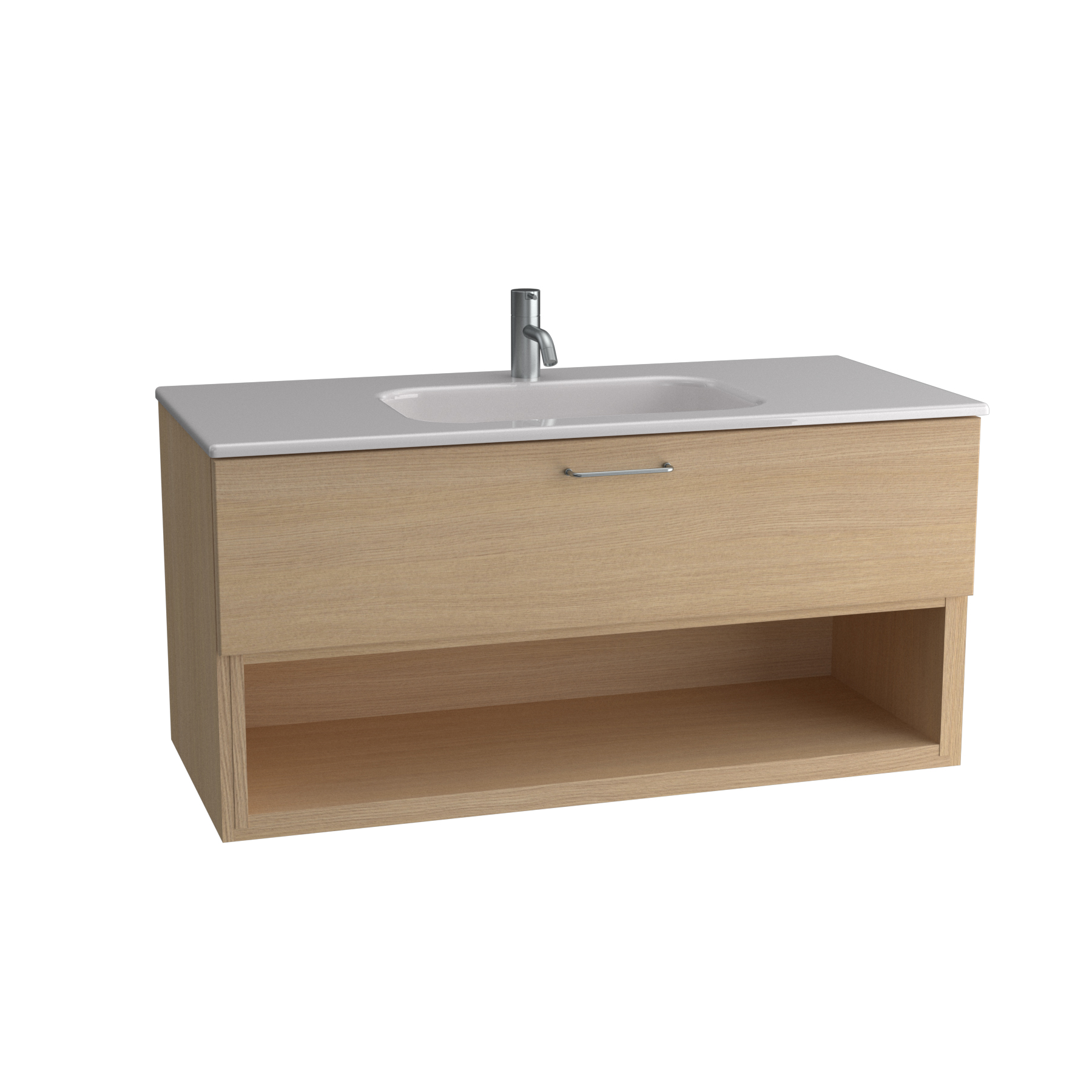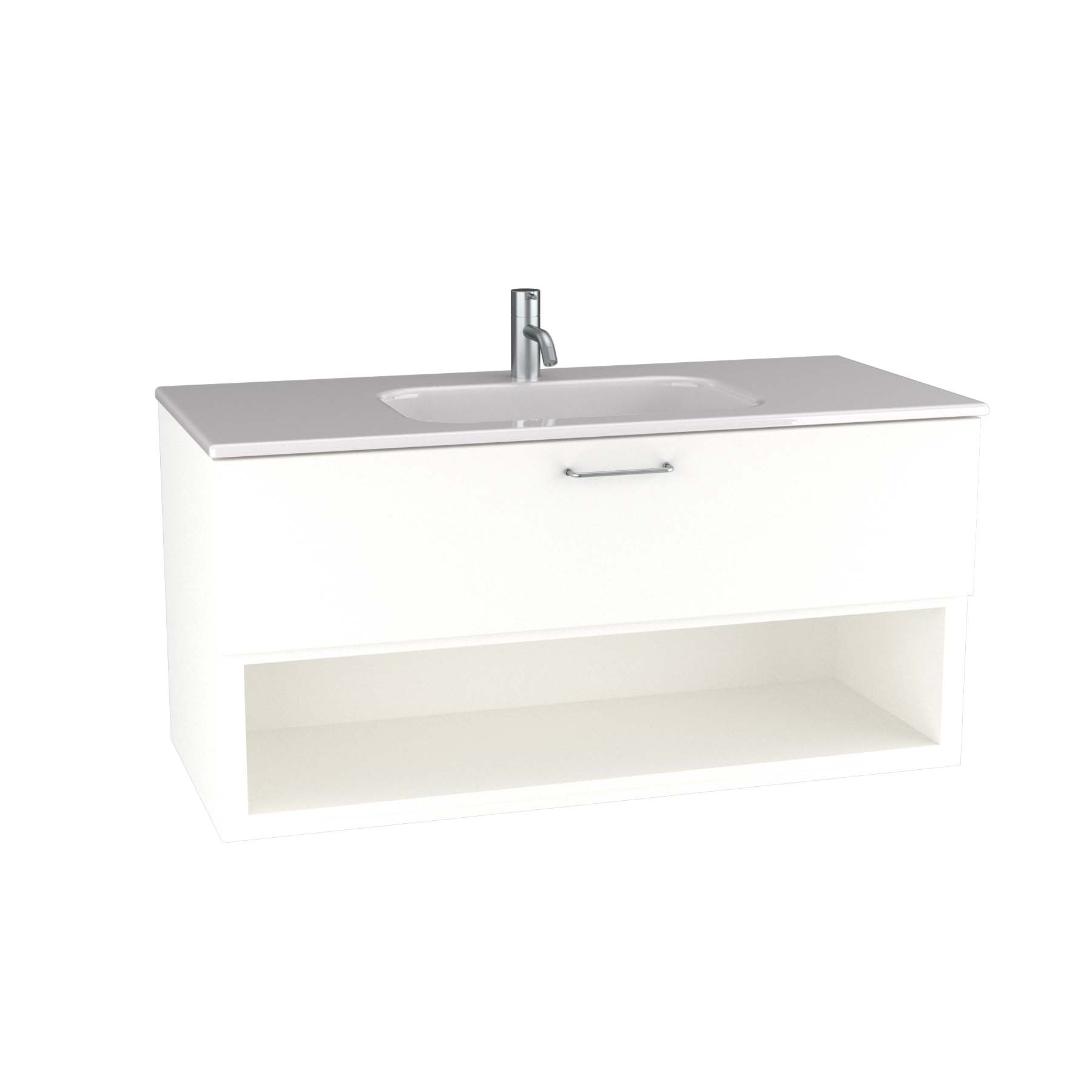 Tvättställsskåp Ballingslöv KO100 Bright är ett stilrent tvättställsskåp med en välplanerad låda samt en öppen hylla nedtill.