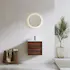 Spegel Bathlife Skina är en rund spegel med en elegant LED-belysning som belyser väggen bakom spegeln. Belysningen har ett normalvitt ljus. Spänning: 220-240 V. Spegelns ram består av frostat glas som släpper igenom ljuset.