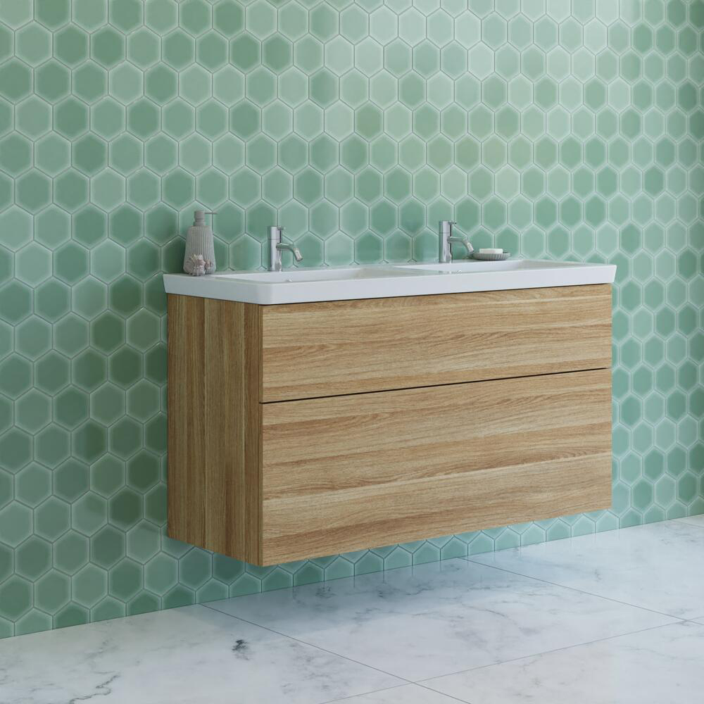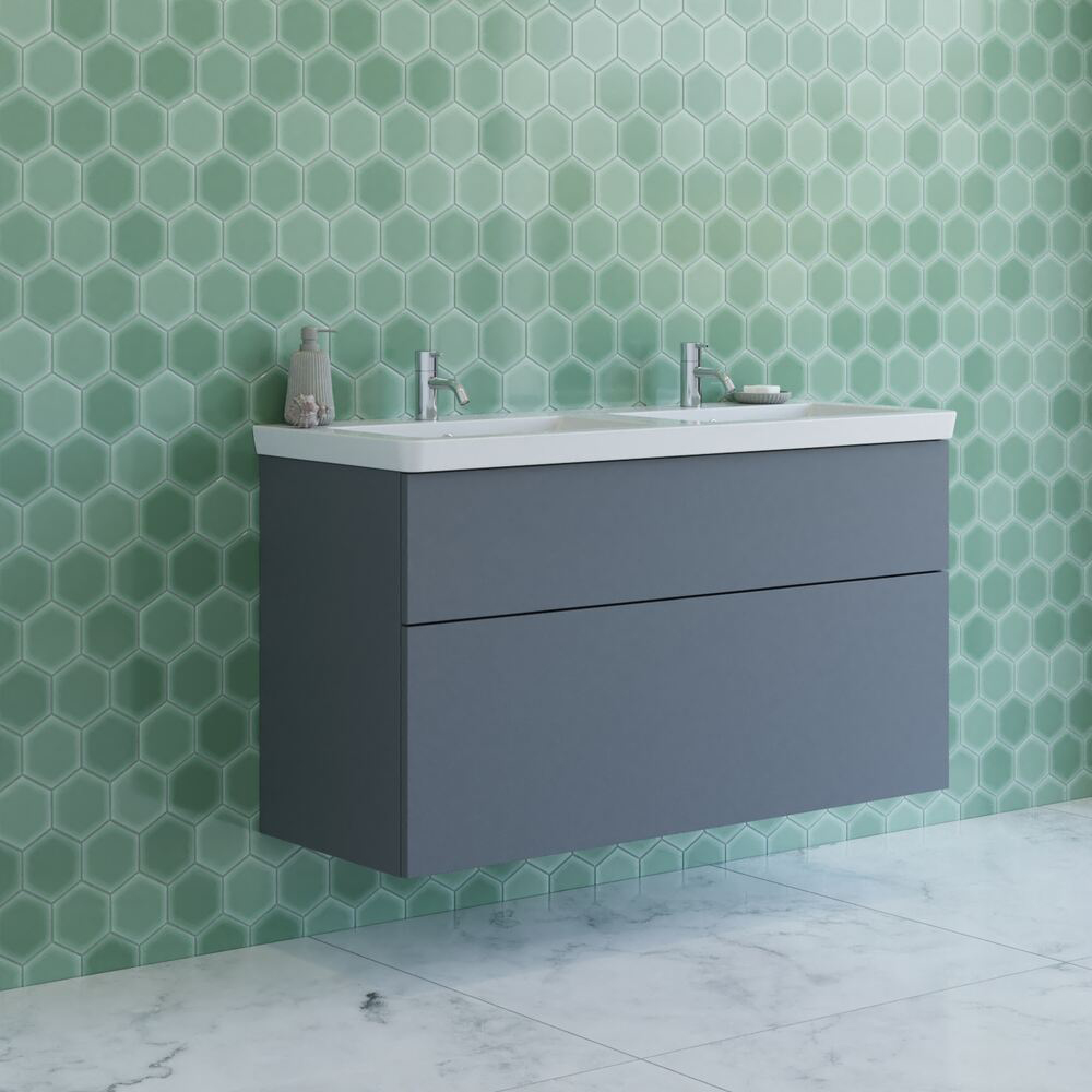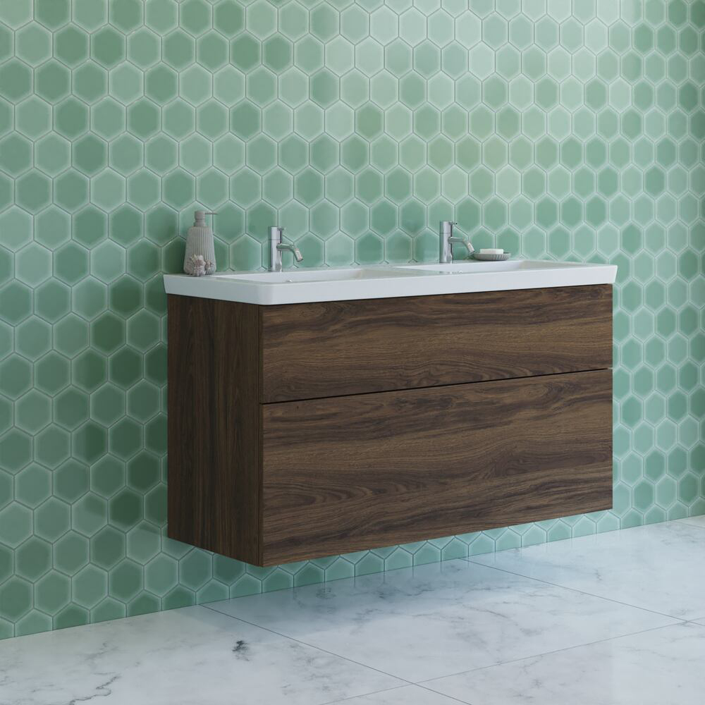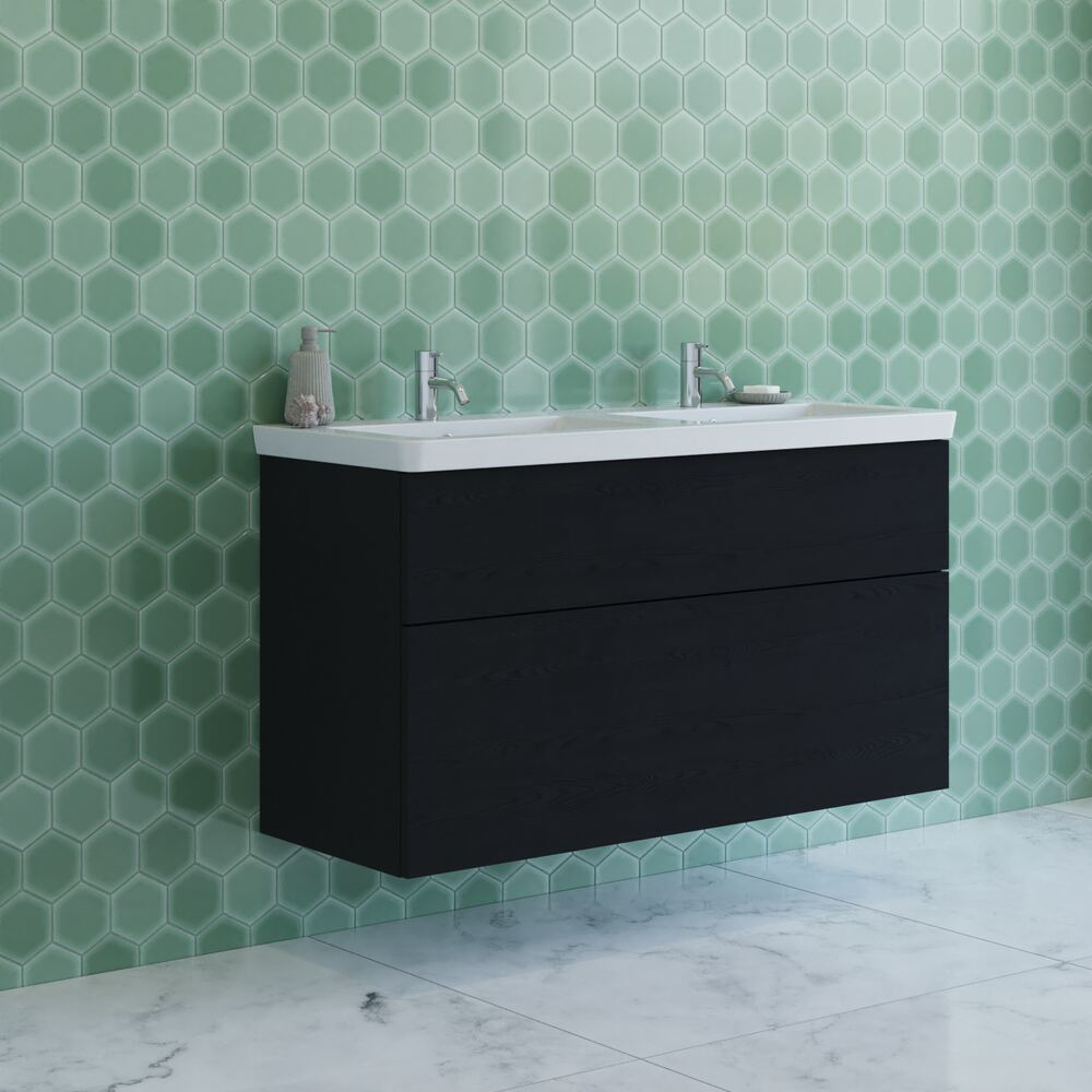Möbelpaketet är designat och tillverkat i Danmark med fokus på hållbar kvalitet, funktionalitet och estetiskt uttryck. Luna Larghetto Dubbel är en helhetslösning för dig som vill ha ett badrum med plats för fler, utan att tumma på varken stil eller struktur.