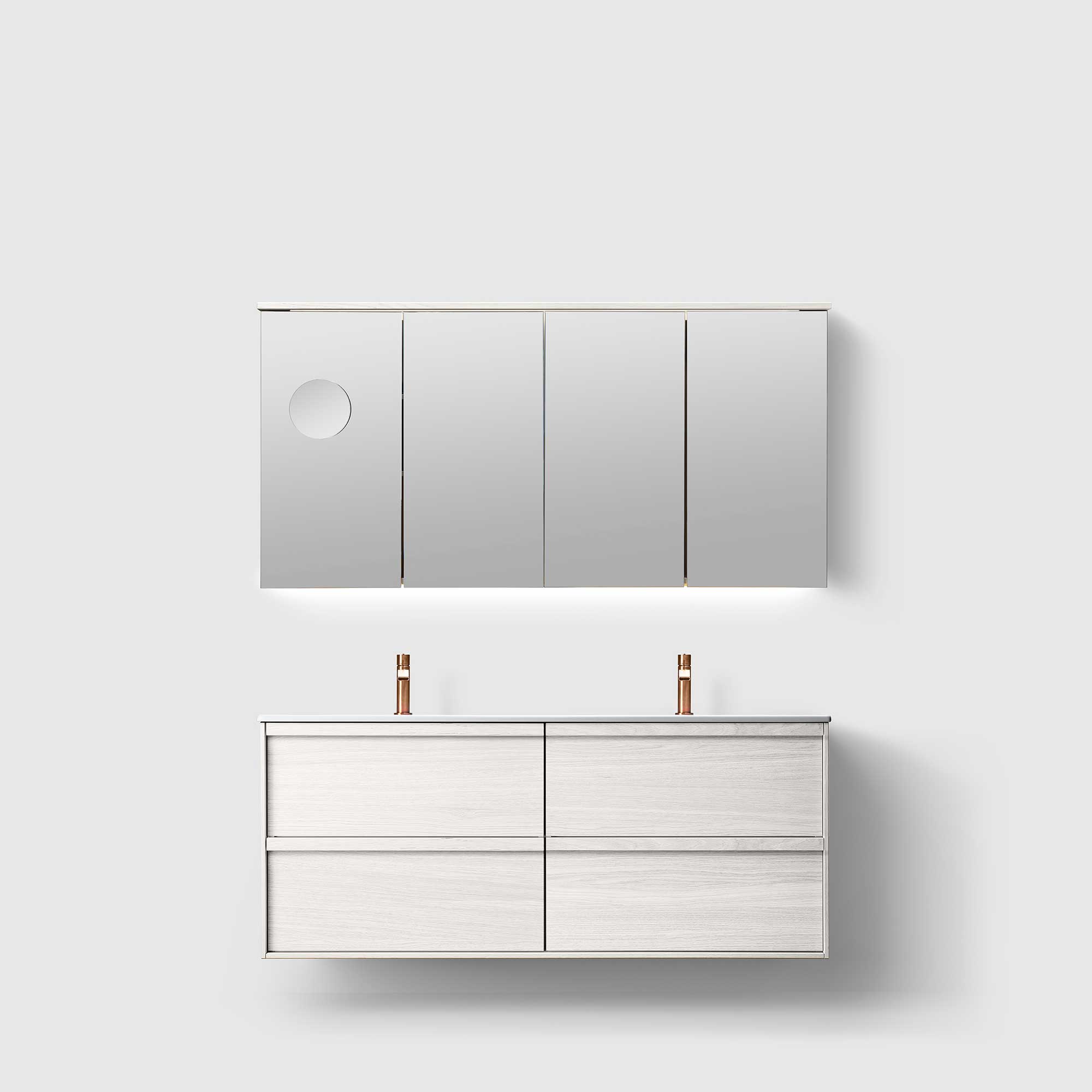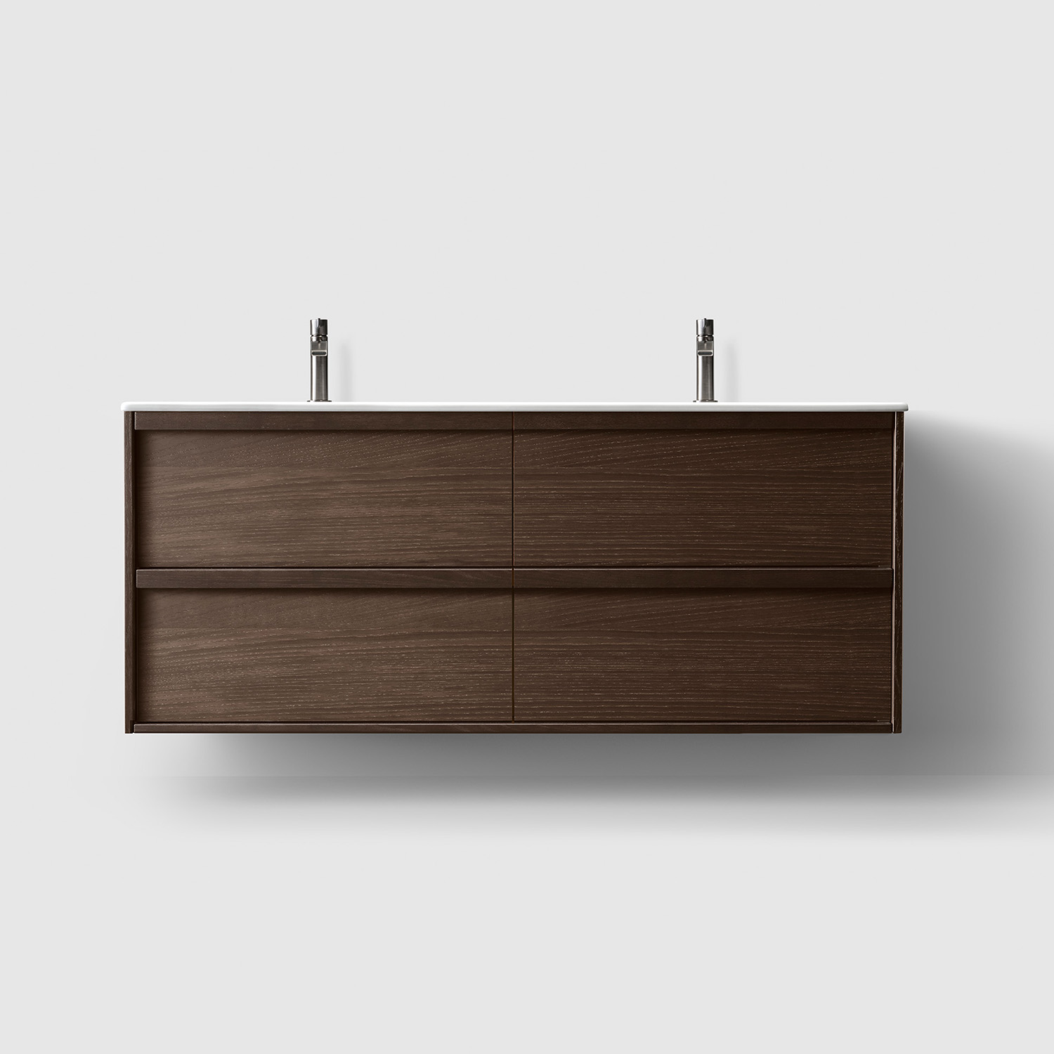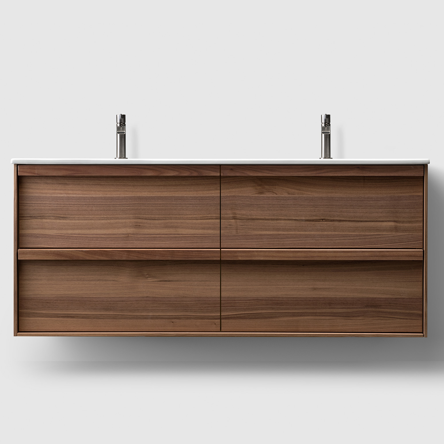 Haven H2/140 är en vacker och utsökt badrumsmöbel med ärliga material. Bredden på möbeln är 1400 mm och den kommer med ett dubbelt porslinshandfat. Passar perfekt i familjebadrum.