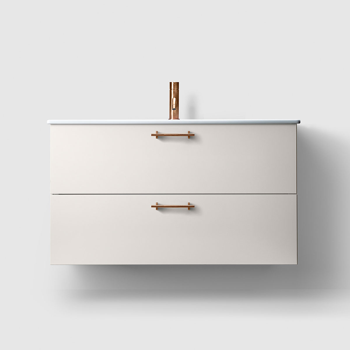 Tvättställsskåp HavenH3/100 med PorslinshandfatVitlackerad, Tvättställ i Porslin med Knopp A2.02 i Mattsvart