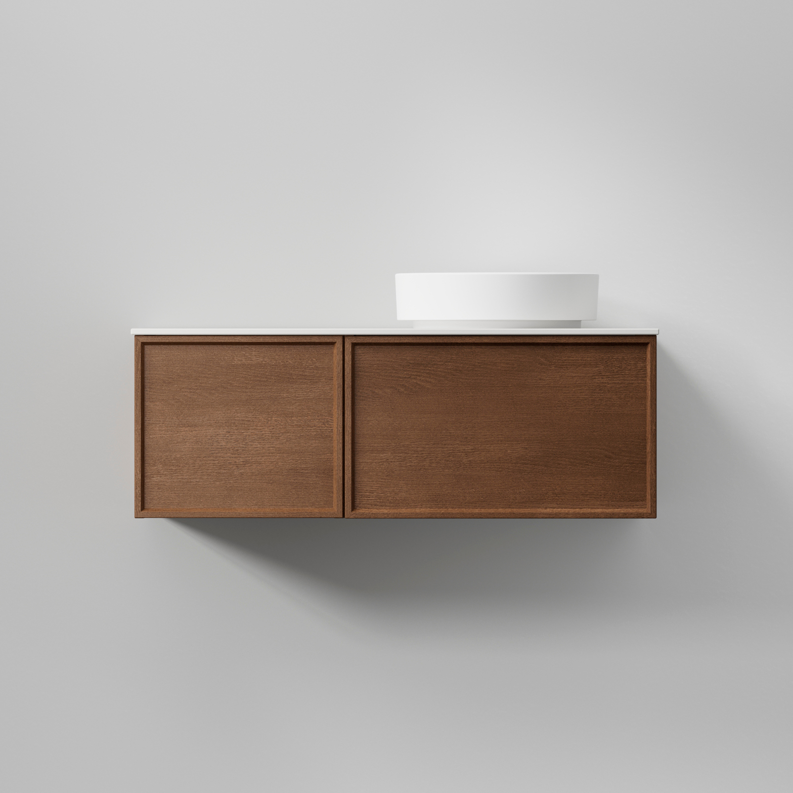Med Air Wood skapar du enkelt din egen ikoniska badrumsmöbel. Utgå från grunddesignen – ett vitt blad – och intag sedan rollen som inredningsdesigner där du väljer fanér, bänkskiva och givetvis tillval efter ditt personliga tycke.