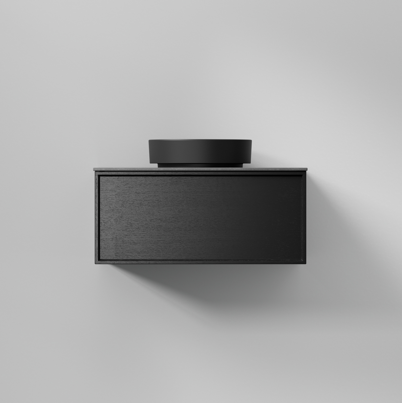 Tvättställskåp INR Air Wood 80 är ett modernt tvättställsskåp med hel lådfront med fackindelad innerlåda. Fingerskarvade detaljer i massiv ek.