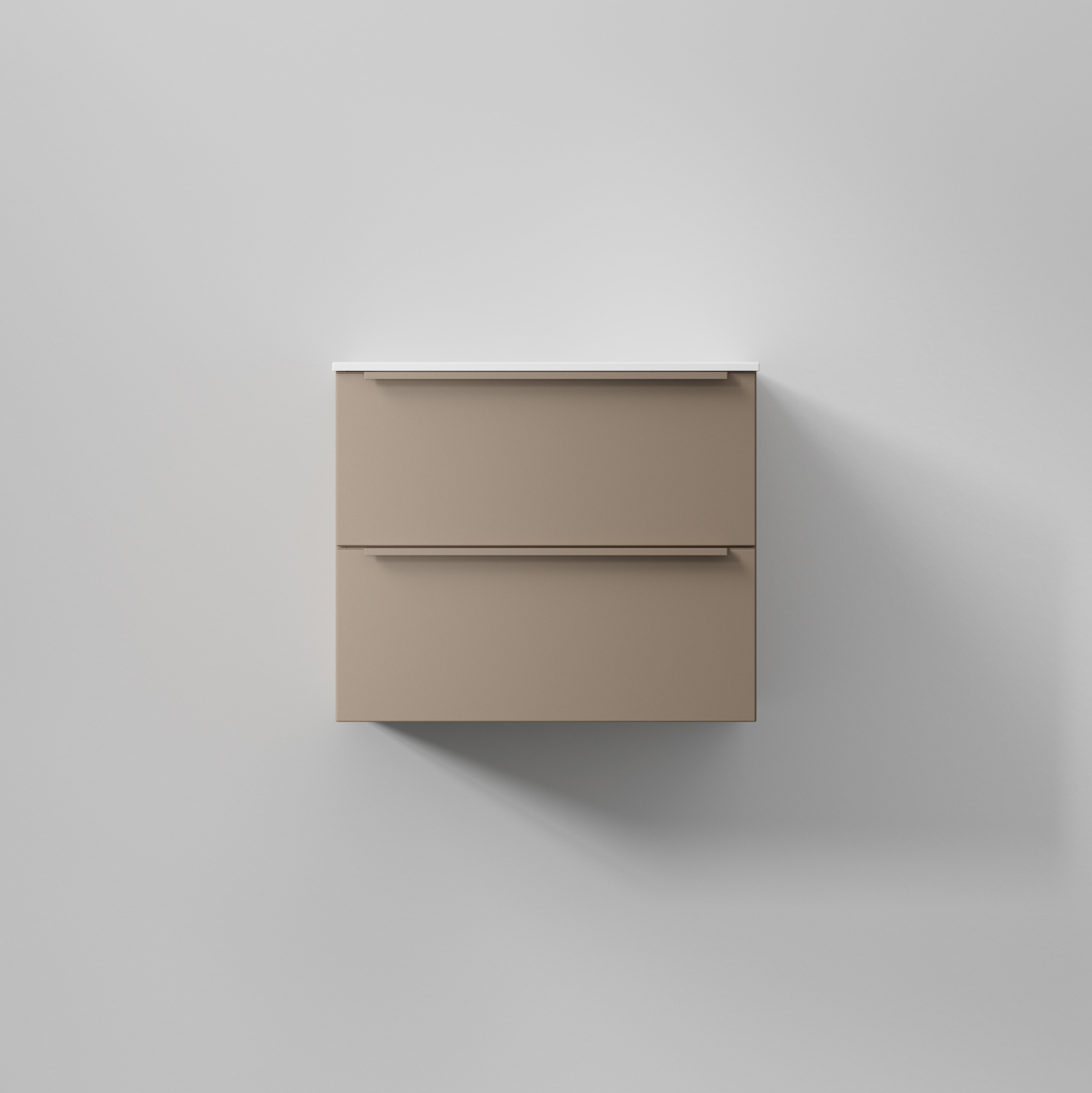 Tvättställsskåp INR Core Avant kännetecknas av en stilren design med slät front med handtagsprofil, i lackerad aluminium i samma kulör som kommoden.