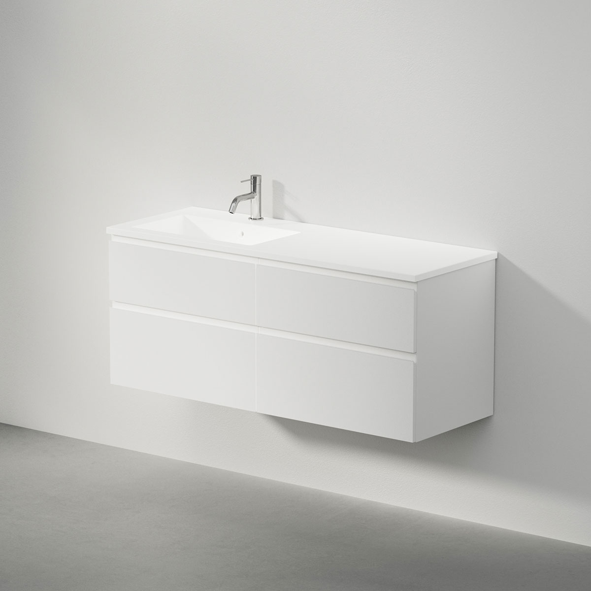 Välj mellan klassiskt tvättställ i porslin eller det tunnare tvättstället i stenkomposit med kantigare form. Tvättstället i stenkomposit i bredden 120 kan du få som dubbel eller enkel med hon centrerad eller till antingen höger eller vänster.