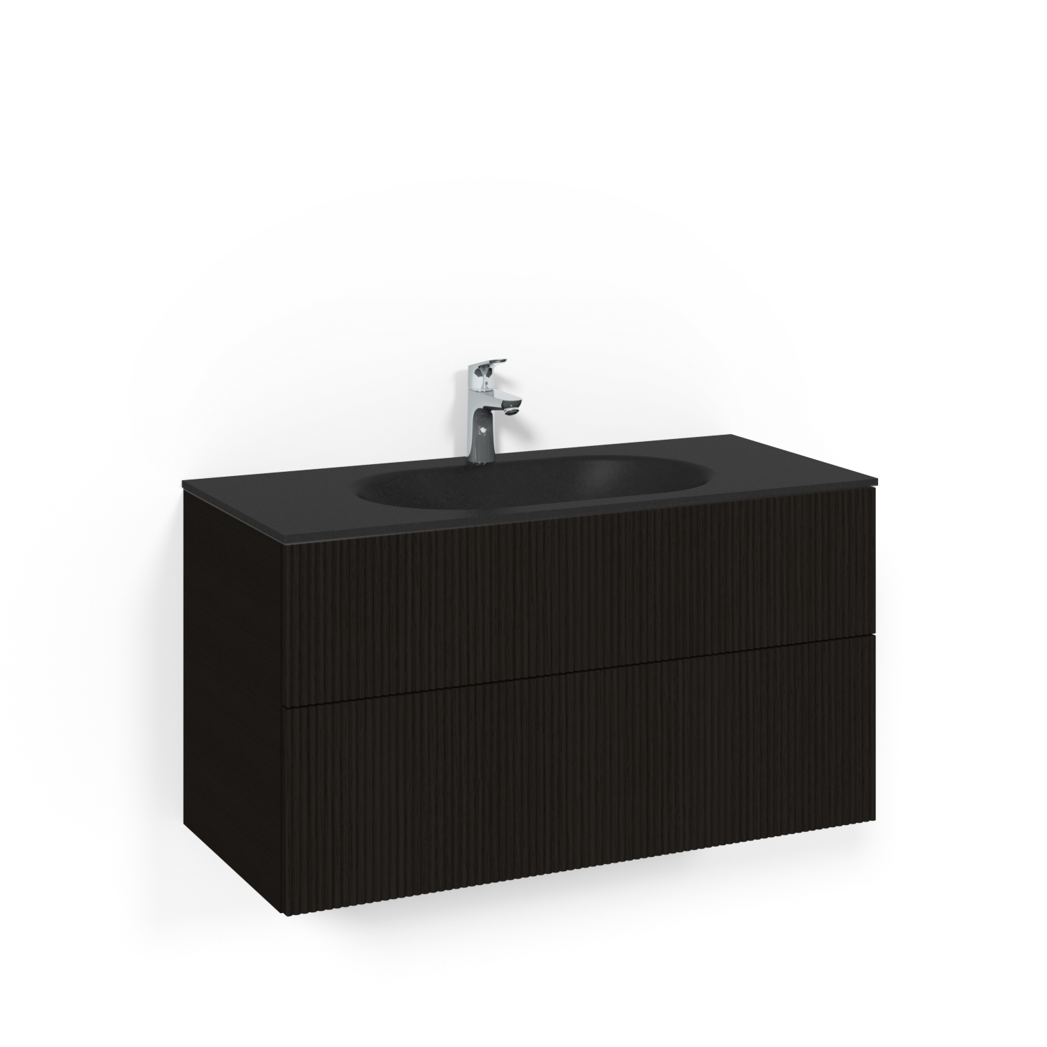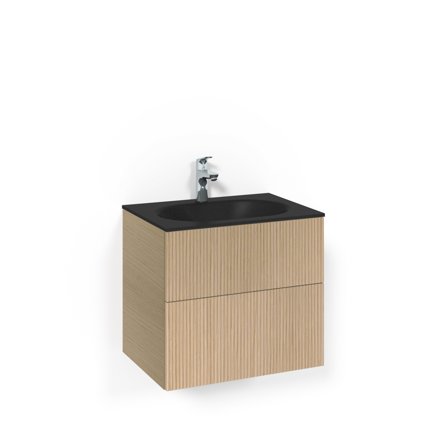 Tvättställsskåp Macro Design Crown Line är en svensktillverkad möbel där det ingår tvättställ och två mjukstängande och rymliga lådor.