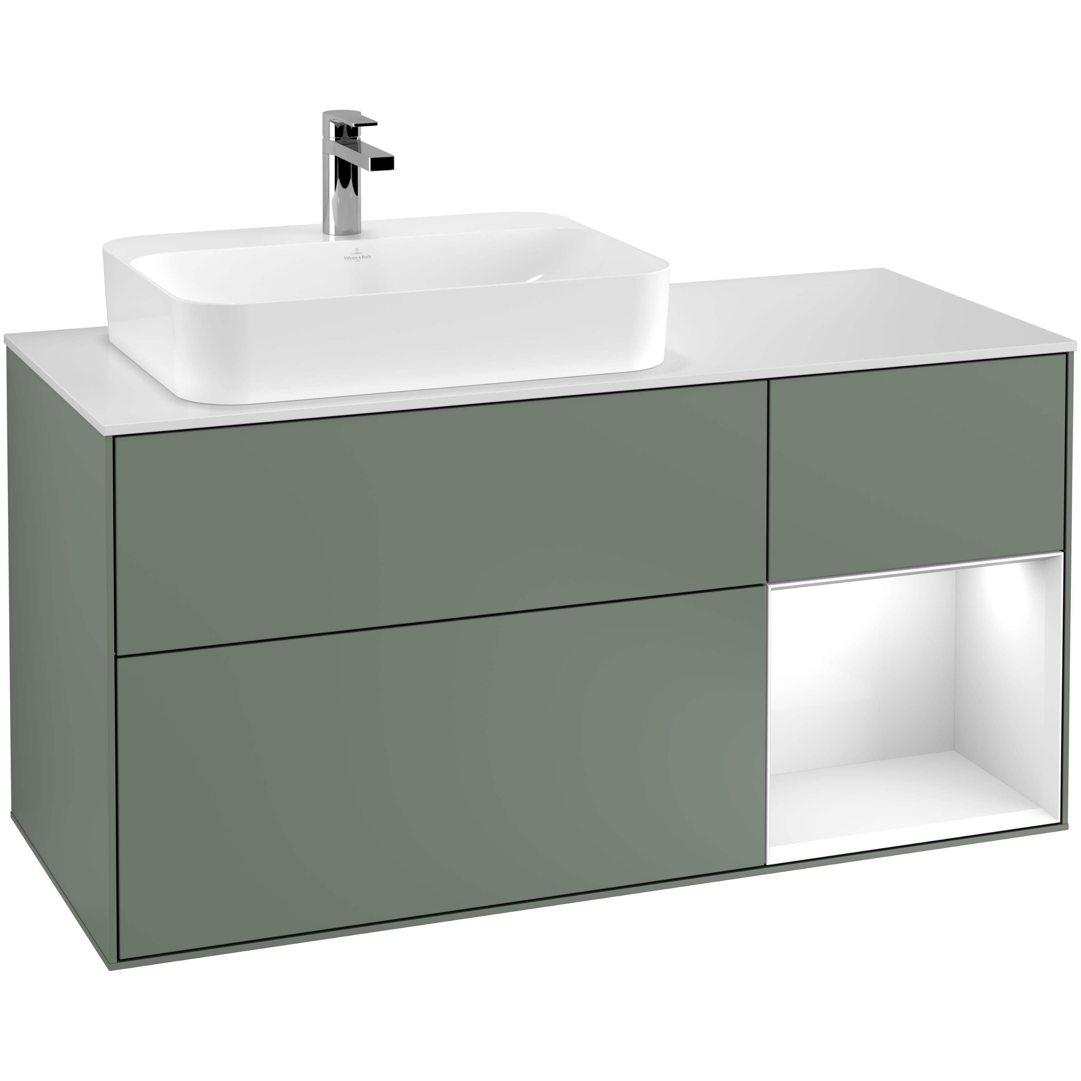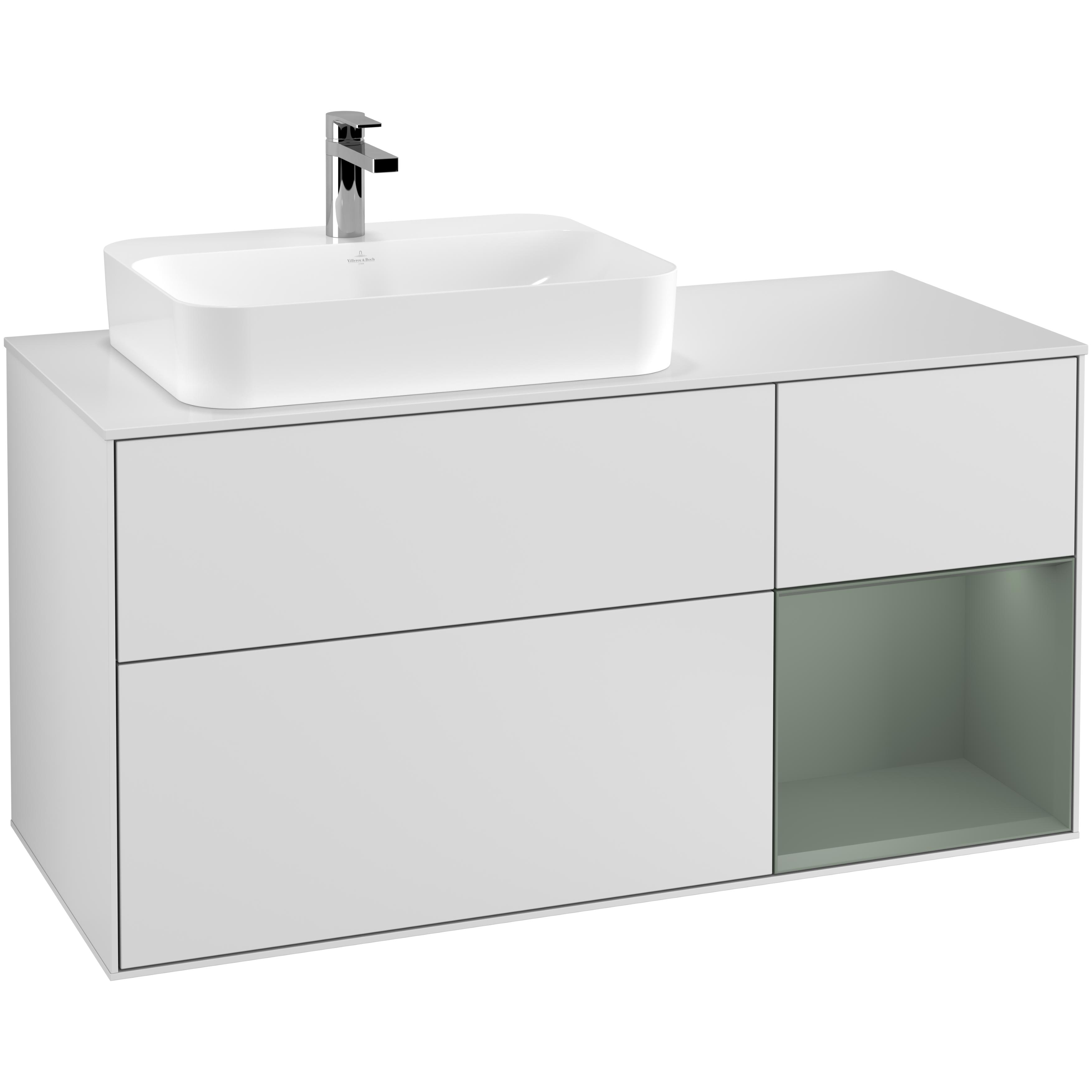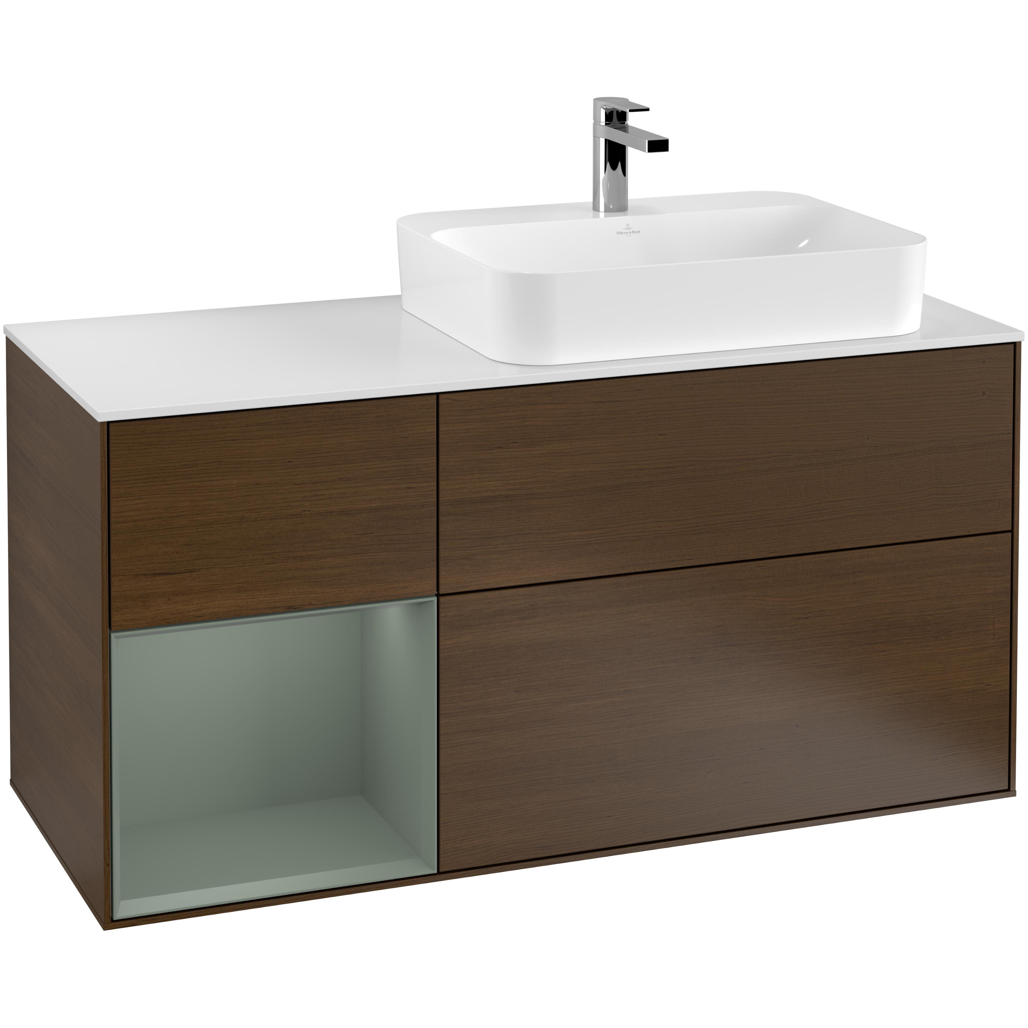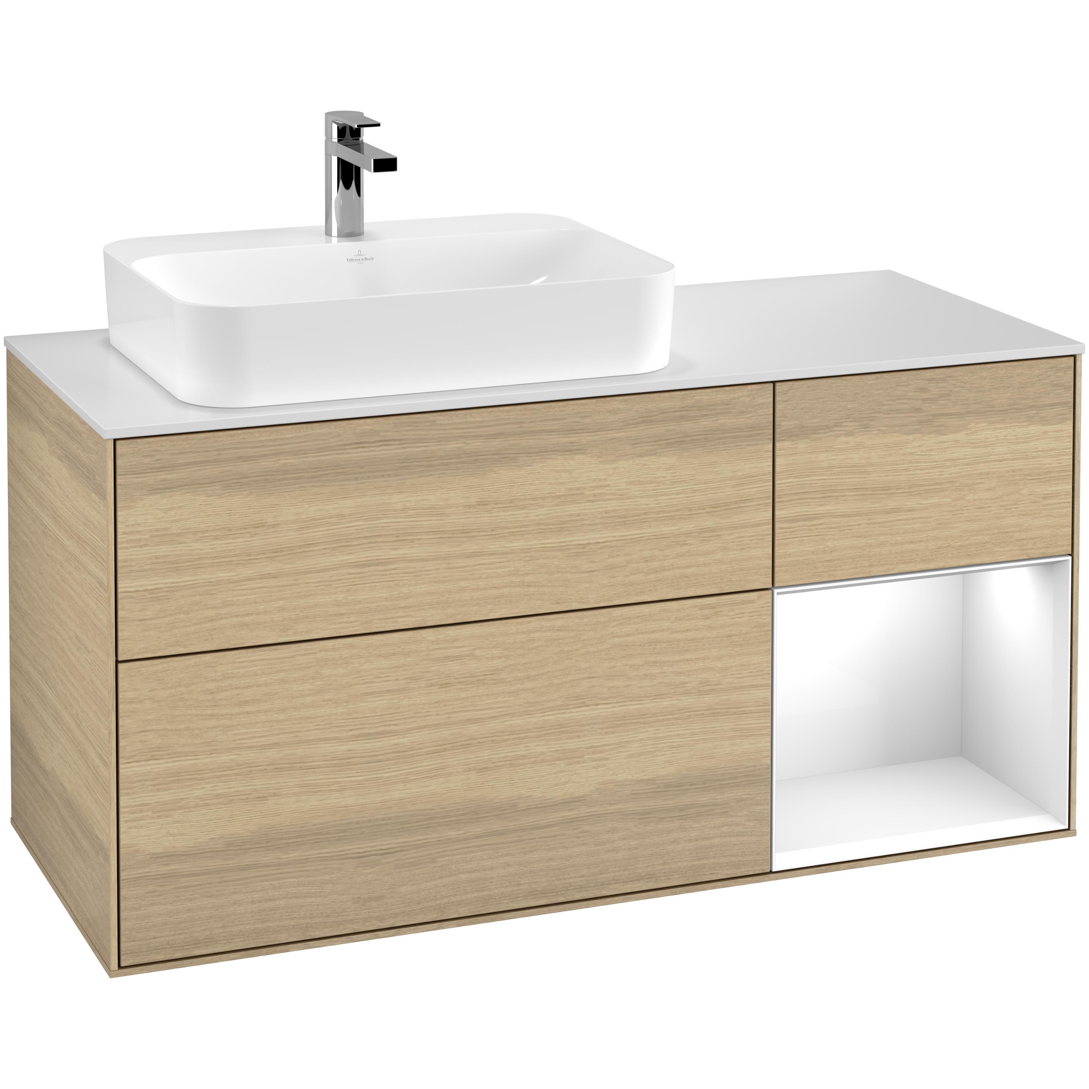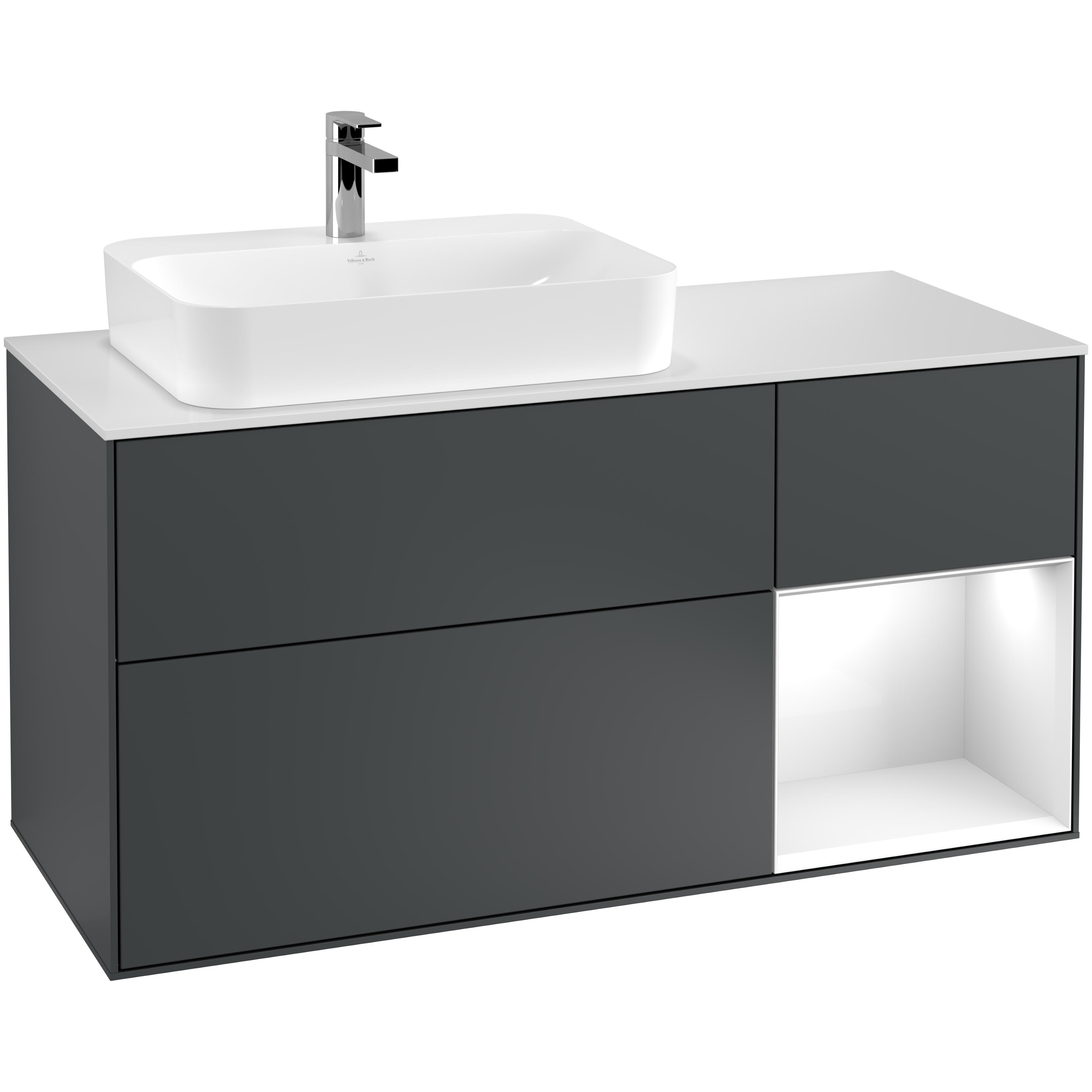 Tvättställsskåp Villeroy & BochFinion med 3 Lådor Hylla och Bänkskiva för Ocentrerat Ytmonterat Tvättställ