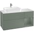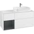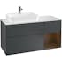 Tvättställsskåp Villeroy & BochFinion med 3 Lådor Hylla och Bänkskiva för Ocentrerat Ytmonterat TvättställPion Mattlack/Pion Mattlack med bänkskiva i Mattsvart glas, Lucka Höger