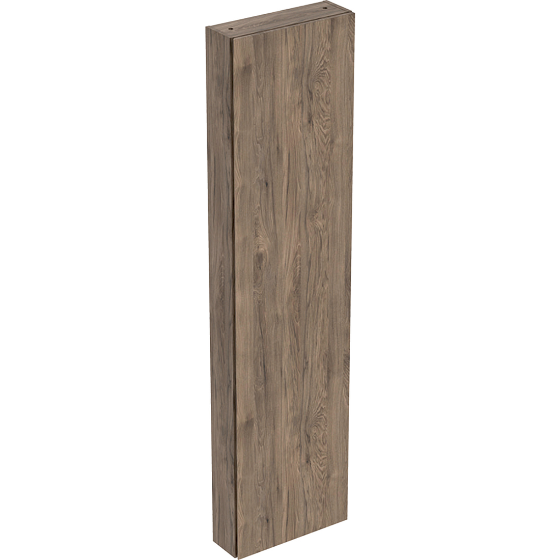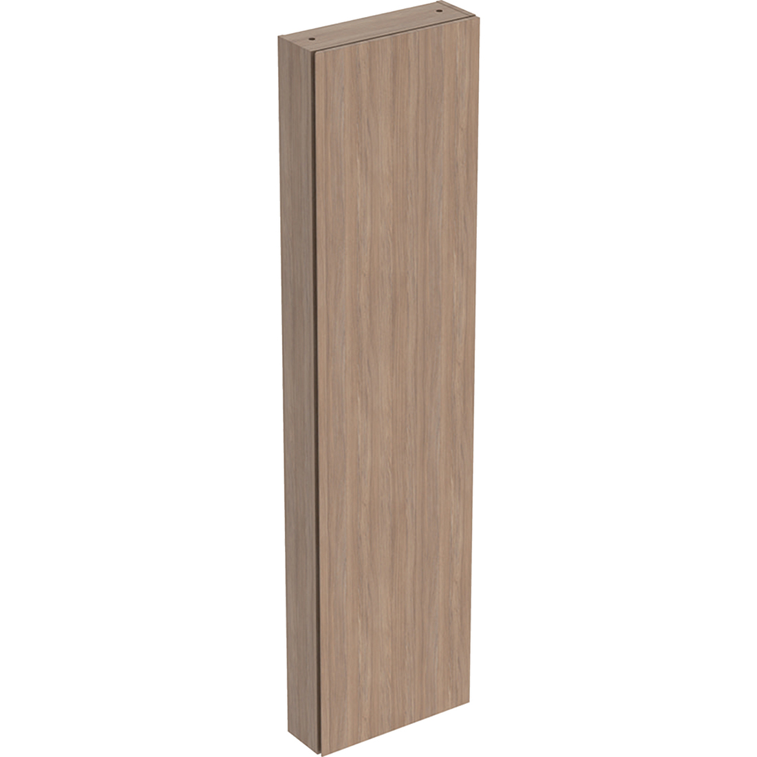 Högskåp Geberit iCon är en badrumsmöbel med två fasta hyllplan, fem flyttbara hyllplan i glas och en dörr med invändig spegel och dämpningsmekanism. Möbeln är tillverkad i fukttålig MDF och levereras färdigmonterad.
