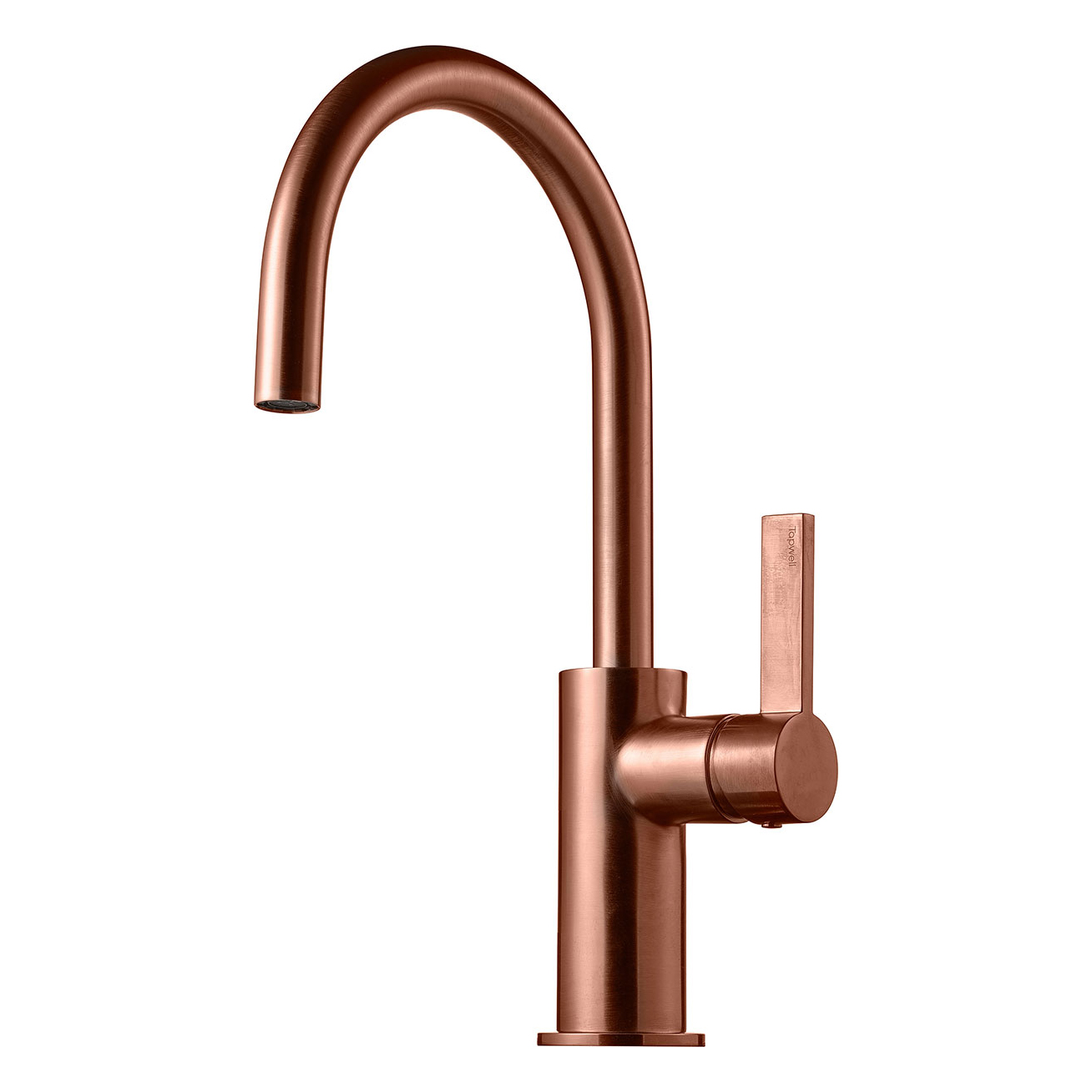 Köksblandare Tapwell ARM380 med rund svängbar pip. Pipens svängradie går att begränsa till mellan 60 och 270 grader med 15 graders intervaller.