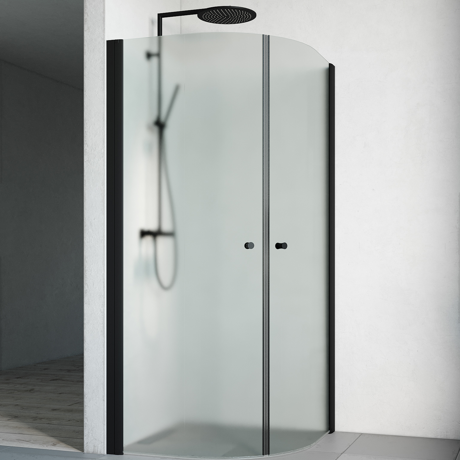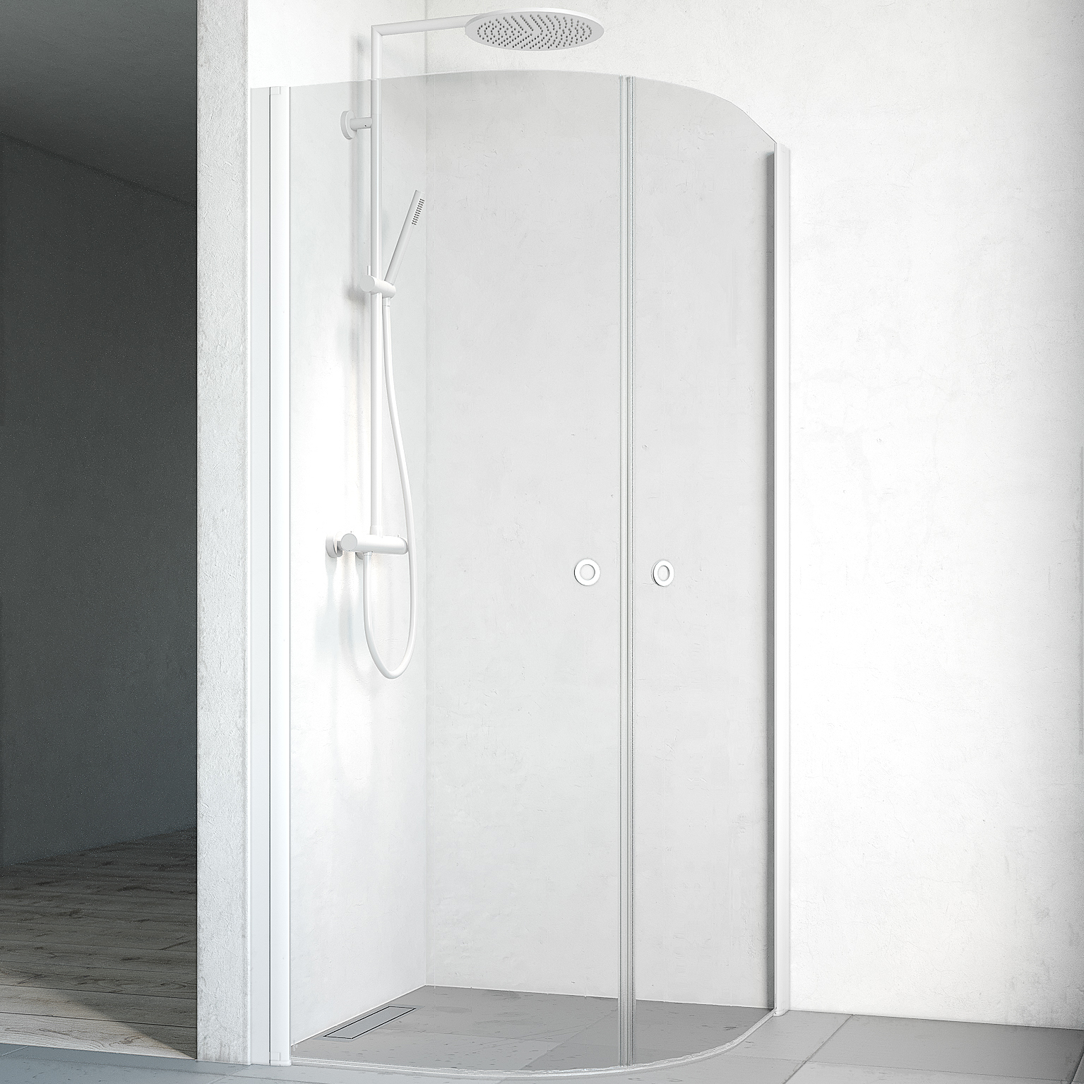 Duschhörn Macro DesignSpirit Round800x800x1970 mm, Vit, Frostat glas med Knopp