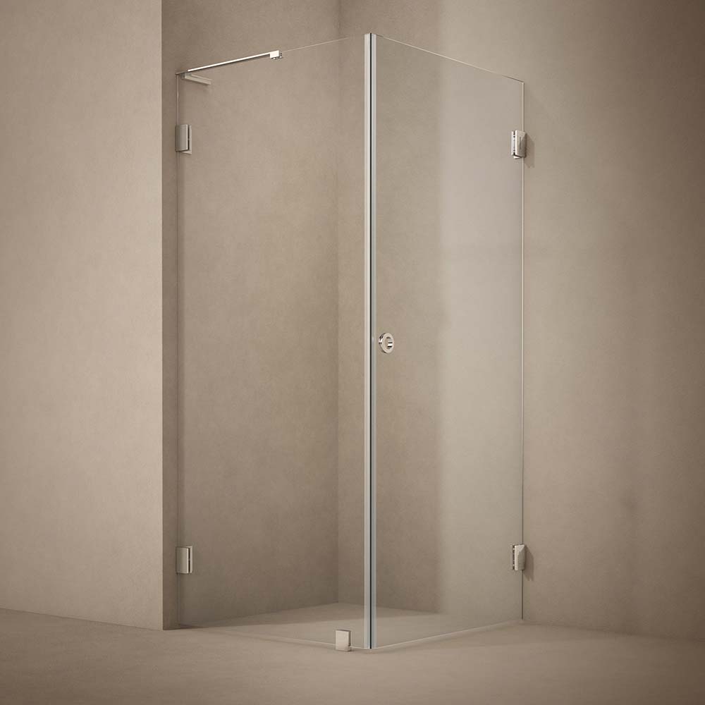 Lynx Combi duschhörna präglas av en avskalad och tidlös design där de stora klara glasytorna står i fokus. Den fasta väggen i kombination med dörren skapar ett luftigt och öppet uttryck som ger badrummet en känsla av rymd och lugn.