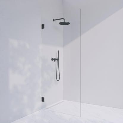Flairs duschväggar har raka väggar och dörrar som ger ett avskalat, elegant intryck utan att ta för mycket plats av rummets yta. Invitrea använder ett åttamillimeters härdat säkerhetsglas som är extremt hållbart till alla duschväggar i den här serien. De monteras i beslag vilket gör att duschen ger ett luftigt intryck.