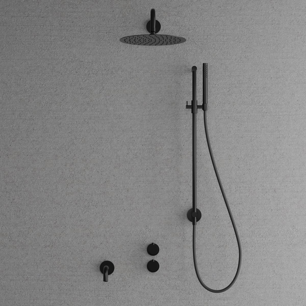 Takduschset Scandtap Steel Harmonized 6X är en termostatblandare för inbyggnad med eleganta slimmade detaljer.