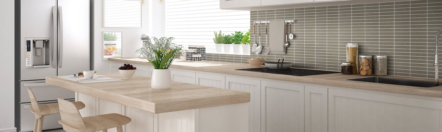 Marmor som kökskakel är en trend som gör sig även i detta lantliga drömkök. I detta köket valde de en större platta (Carrara Marmor 610x610) för att ge ett lugnt och stilrent intryck. Har du ett mindre kök kan du välja mindre plattor eller varför inte välja marmor i någon spännande form?