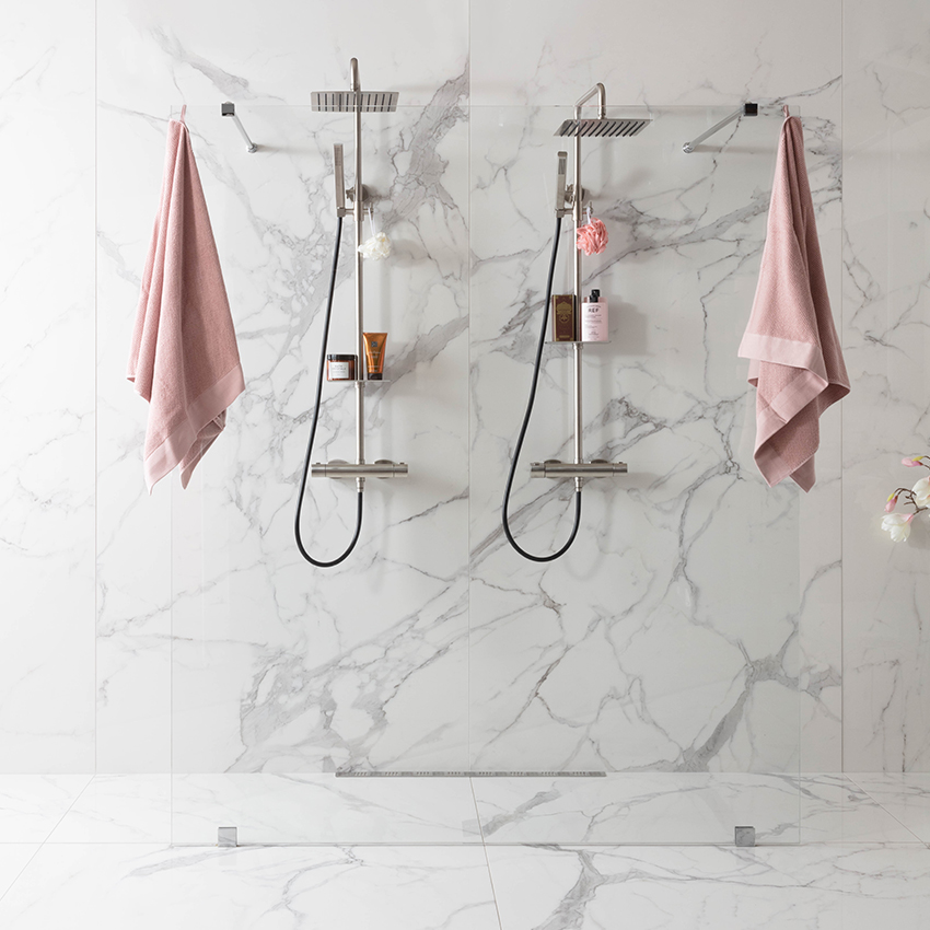 Dubbeldusch är en trendig lösning när du exempelvis ska ersätta ett badkar och har gott om plats.